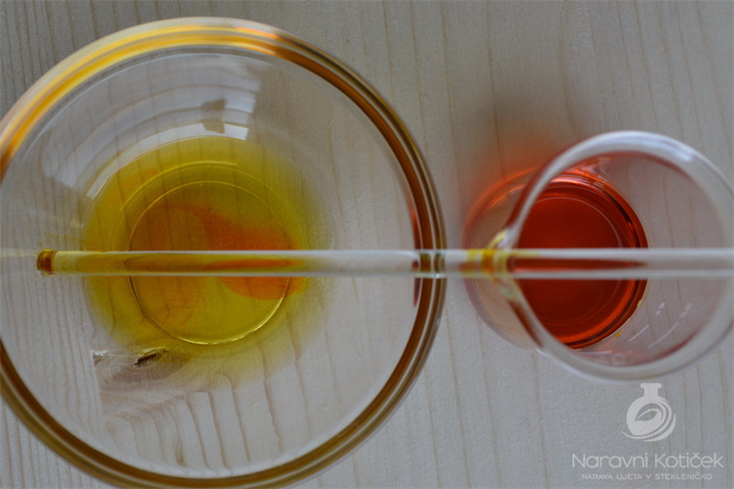 Izdelava: V 50 ml temno stekleničko nakapljajte eterična olja in dotočite macerata. Dobro premešajte, stekleničko opremite z nalepko in jo shranite na hladno in temno mesto.