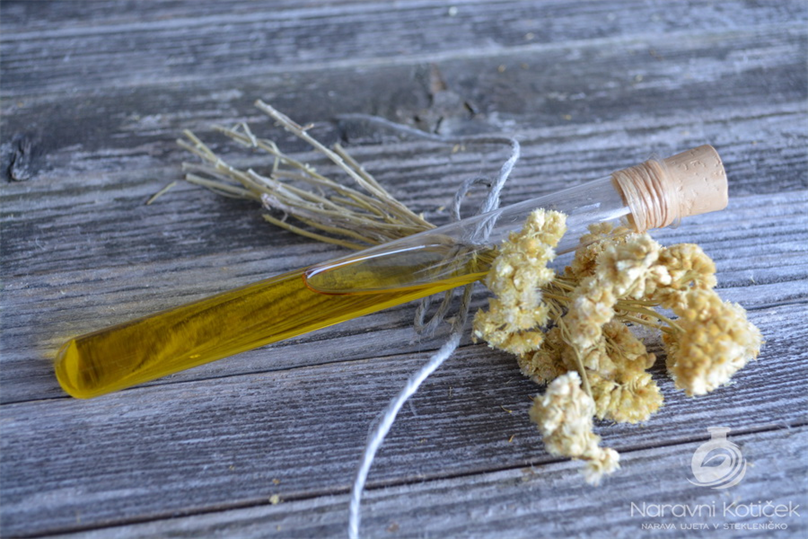- 6 kapljic eteričnega olja laškega smilja (Helichrysum italicum)